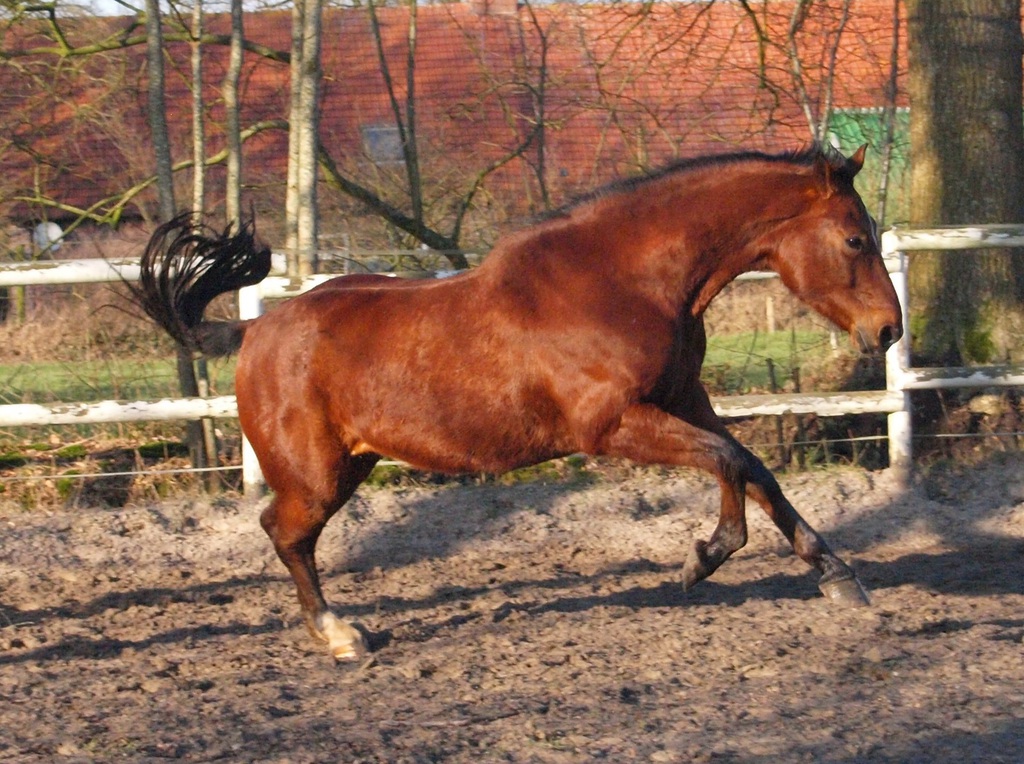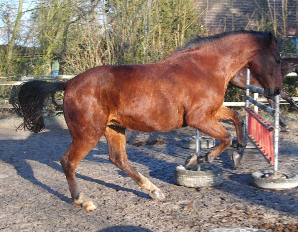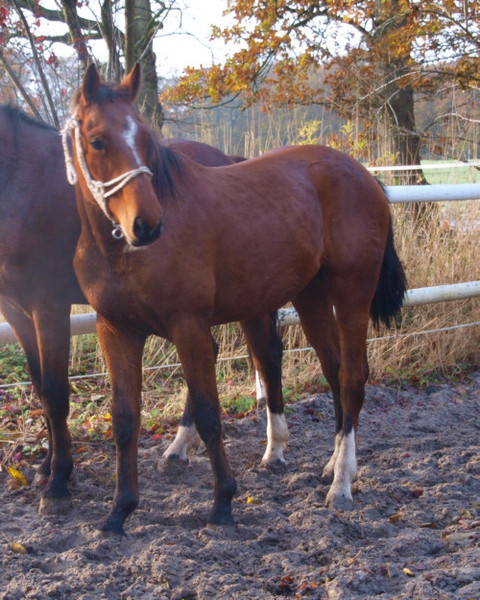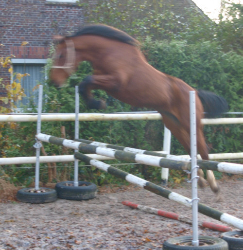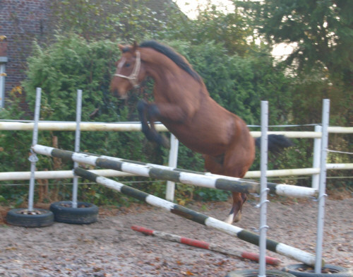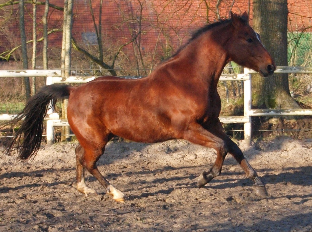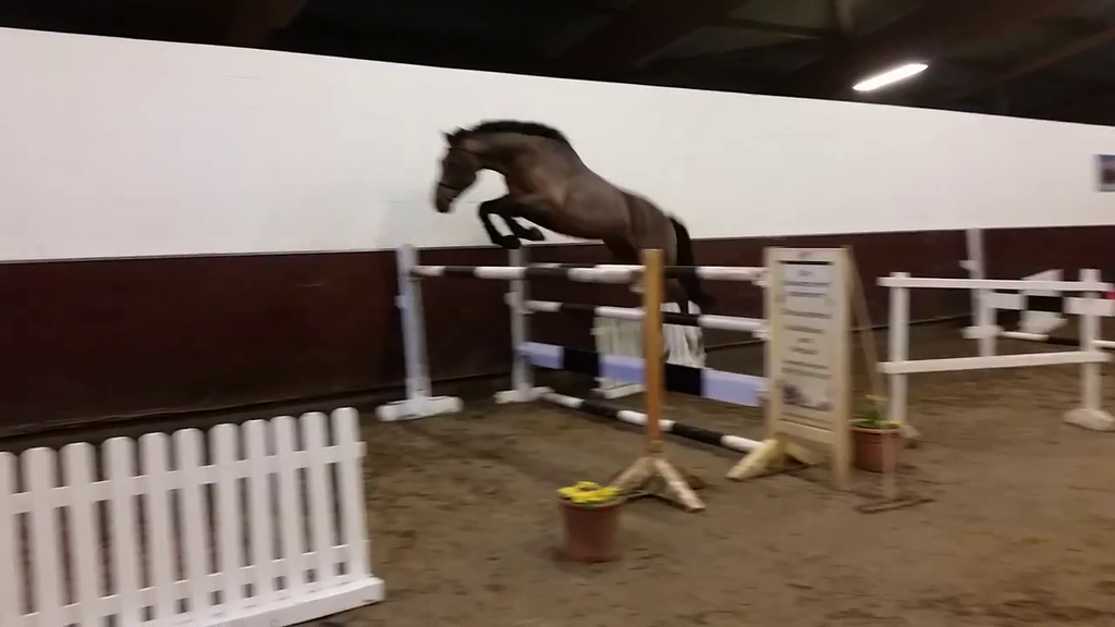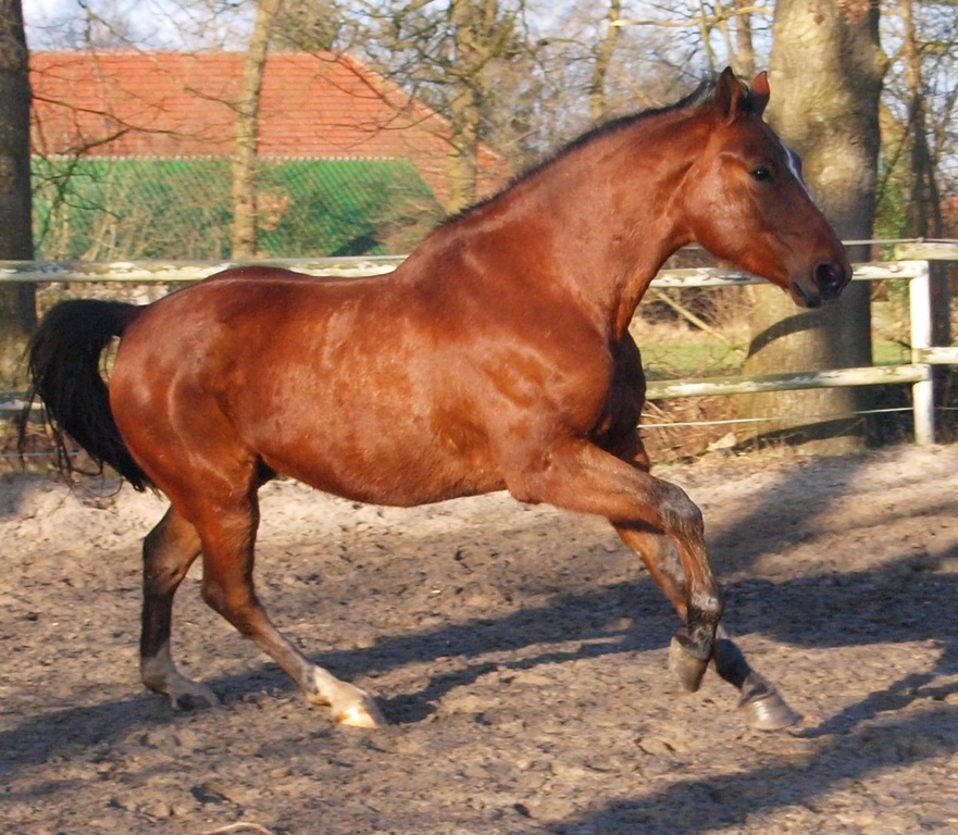 Springtalentierter Youngster aus einem hervorragenden Mutterstamm. Er besitzt ein enormes Talent am Sprung, welches er schon als zweijähriger bei uns beweisen konnte. Bestimmt ein Pferd, welches für höhere Aufgaben geeignet ist.