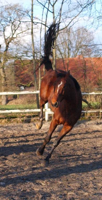 Er beweist nun was in ihm steckt, ausgewachsen und longiert. Anreiten steht an!