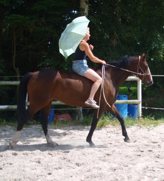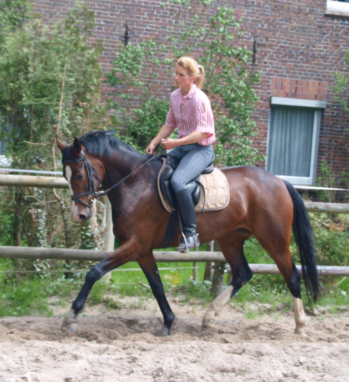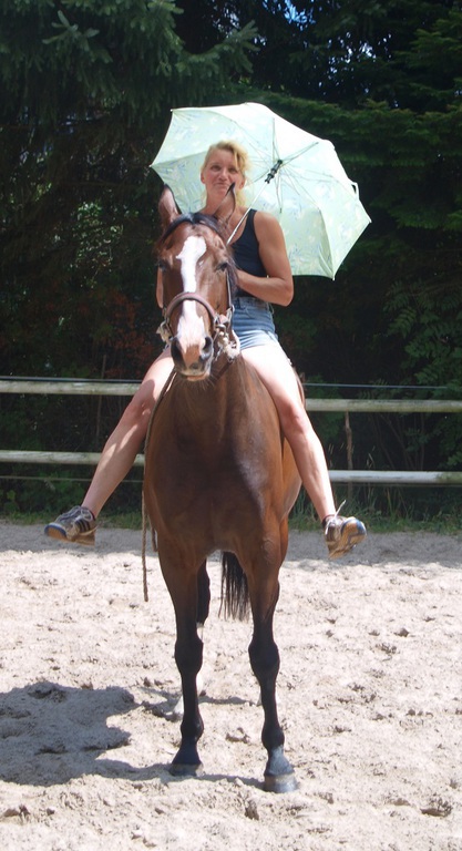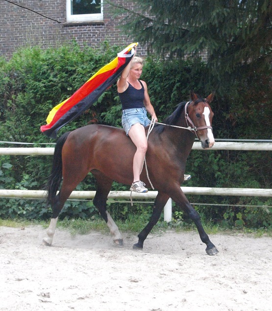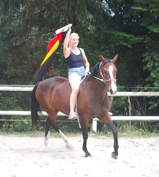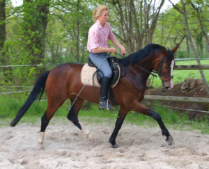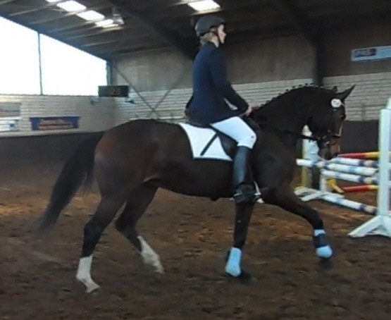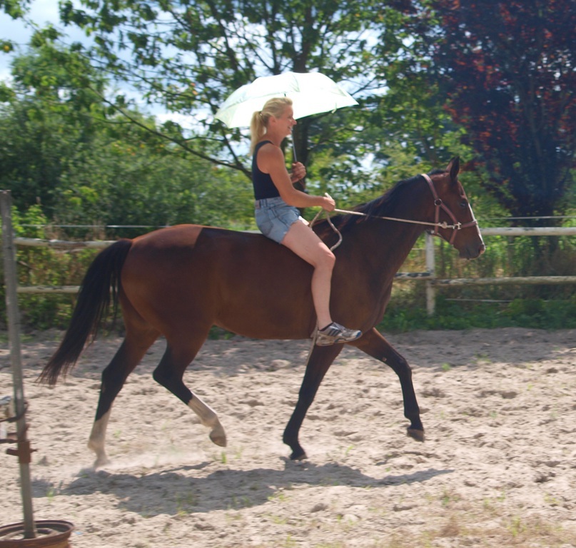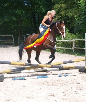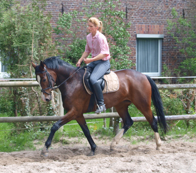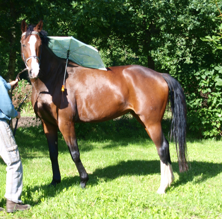 Aus ihr ist eine bewegungsstarke, sympathische, unkomplizierte und schicke oldenburger Stute geworden. Man kann wirklich mit dieser jungen Dame fast allles anstellen. Ob sie über eine Plane laufen soll, oder der Reiter diese mitträgt, einen Regenschirm (er-)tragen muss oder auch ohne Sattel geritten wird, Bella stört eigentlich nichts. Mit einem derzeitigen Stockmaß von 1,64m liegt sie im Gardemaß. Eine Offerte für den ambitionierten Turnier- oder auch Freizeitreiter.