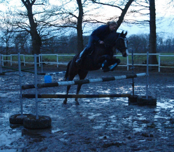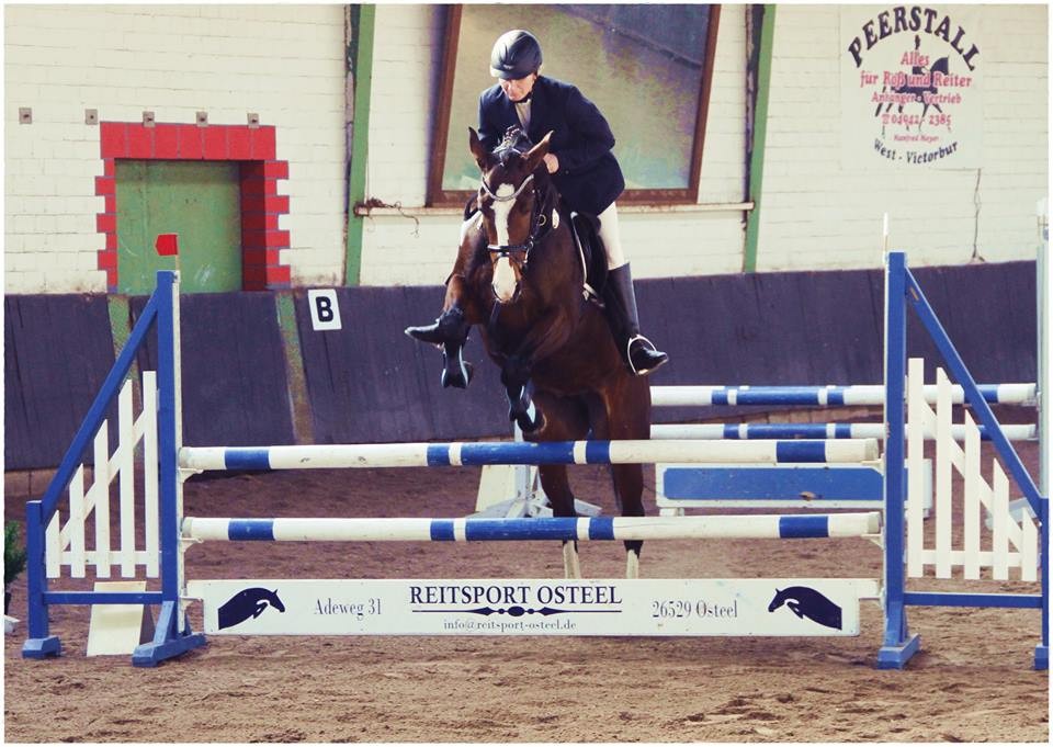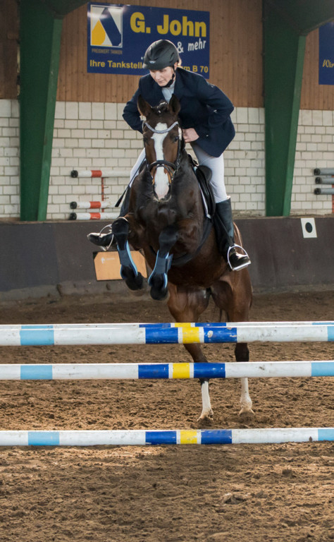Ihren ersten "öffentlichen" Auftritt hat Bella nun am 19.1.2014 mit Bravour bestanden. Gleich im ersten E-Springen auf unserer 40+-Tour in Ostfriesland ersprang sie sich mit einer fehlerfreien Runde den 6. Platz.
