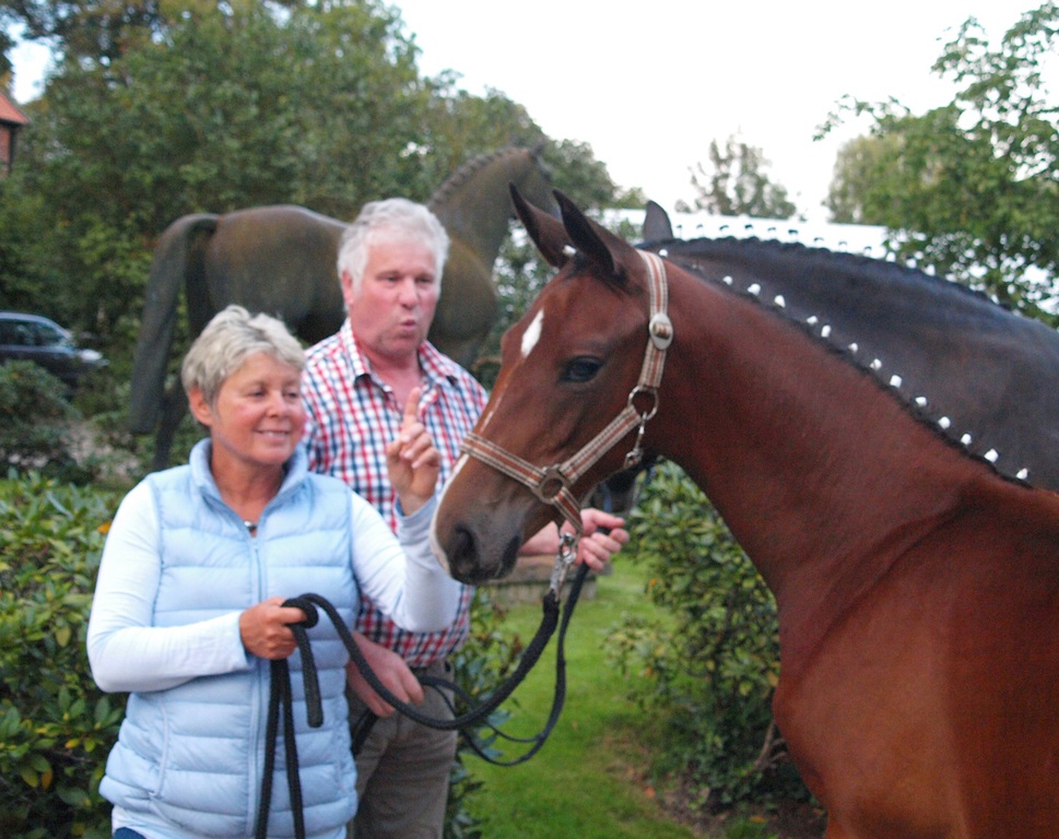 Ein Bruder: Freddie Mercury ist in Verden gekört und Prämienhengst geworden. Nun 7j. M-Dressur siegreich und S-Dressur hoch platziert (3.Platz)
