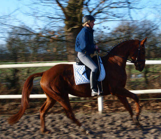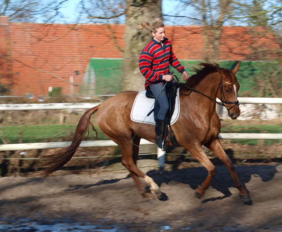 Sie ist artig, besitzt viel Schwung und Elastizität und viel Schulterfreiheit. Sie hat einen raumgreifenden Schritt und eine schöne Bergaufgaloppade.